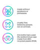 • Flasche (ohne Verschluss) aus 80 % recyceltem Kunststoff.