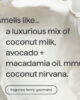 Wer liebt nicht einen guten Twist? Entdecke den Duft von Coconut Twist und tanze ein bisschen. Mit Noten von Kokosmilch, Avocado und Macadamiaöl duftet deine Dusche wie das Kokosnuss-Nirvana.