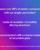 • Die Verwendung der konzentrierten Nachfüllpackungen von Method + der Aluminiumflasche spart über 96 % Plastik im Vergleich zu unseren Einweg-Plastikflaschen.